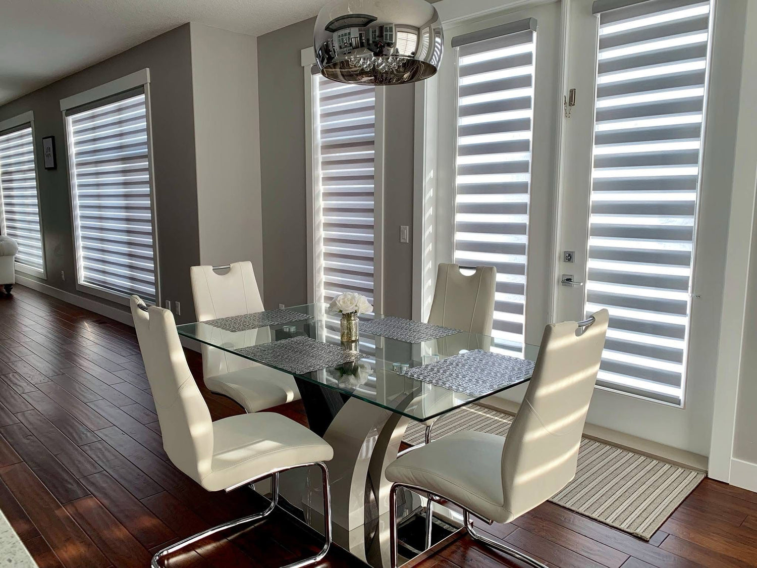 🟡 Zebra blinds combine style and functionality with alternating sheer and solid fabric bands that allow you to easily control light and privacy.